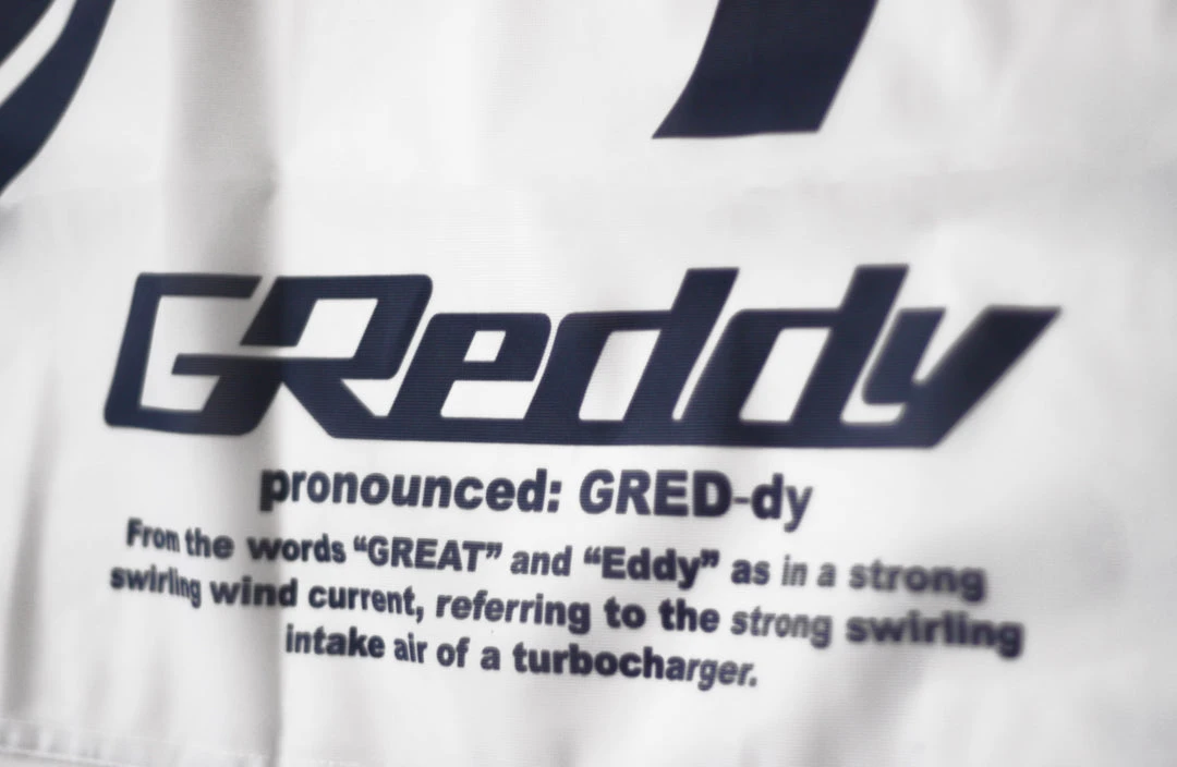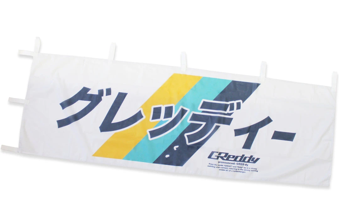 GReddy 3 Stripes with Japanese Katakana Font – White Nobori Flag / Banner